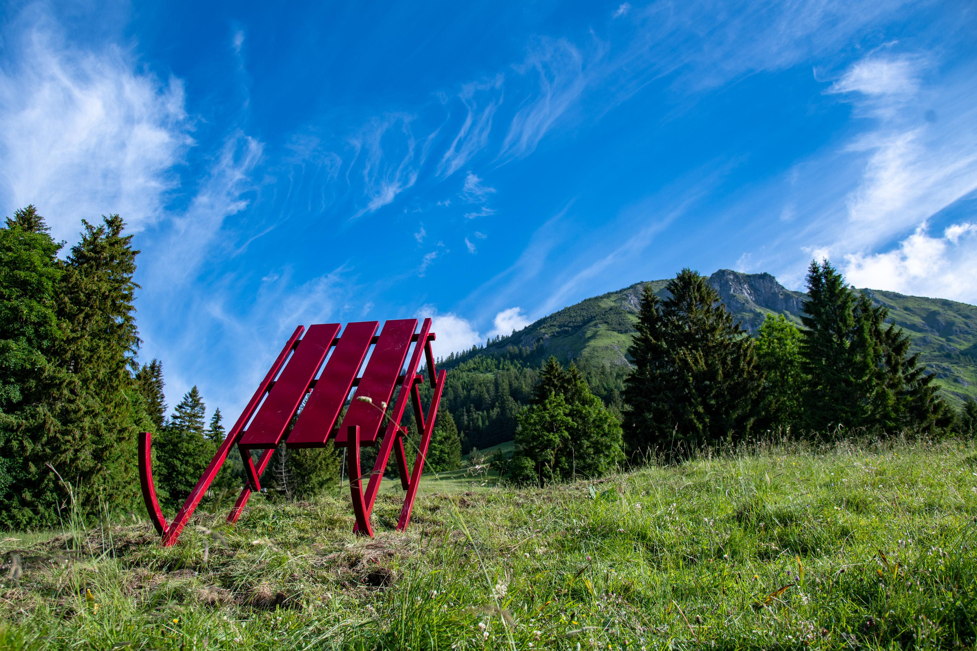 Die Skulptur zeigt einen Schlitten im Moment des Kippens – aus der Zeit gelöst, in Bewegung erstarrt. Offen bleibt, ob er stürzt oder weitergleitet. Einst zum Gütertransport am Muttersberg genutzt, erinnert der Heuschlitten an die mühsame und gefährliche Arbeit der Bergbauern.