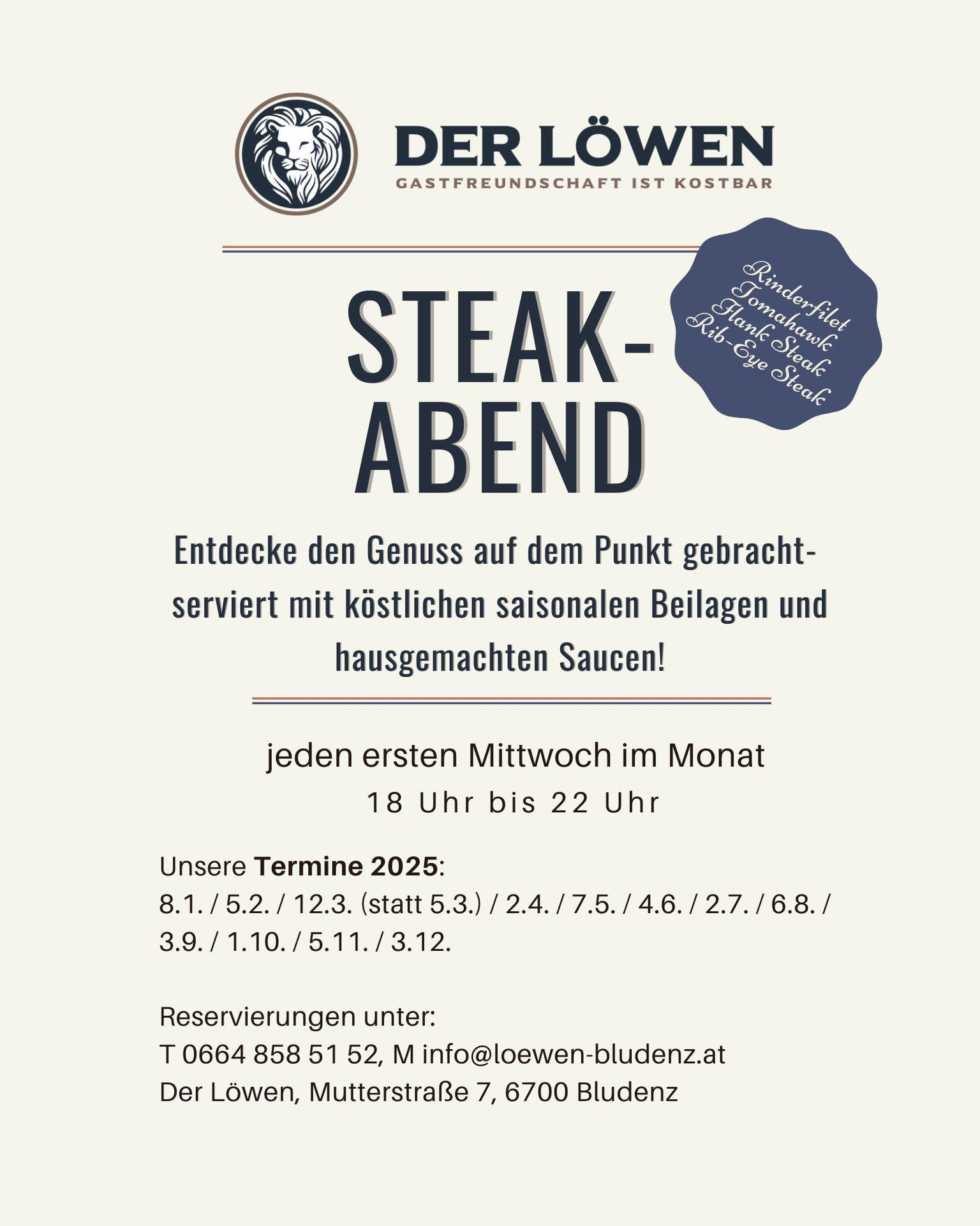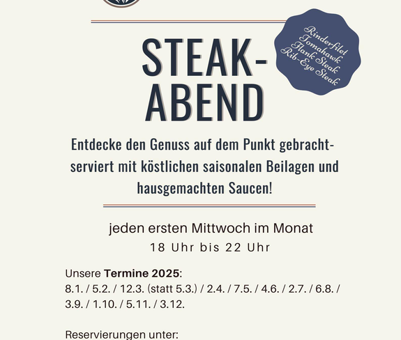 Steak-Abend im Gasthaus "Der Löwen" Entdecke den Genuss auf den Punkt gebracht!