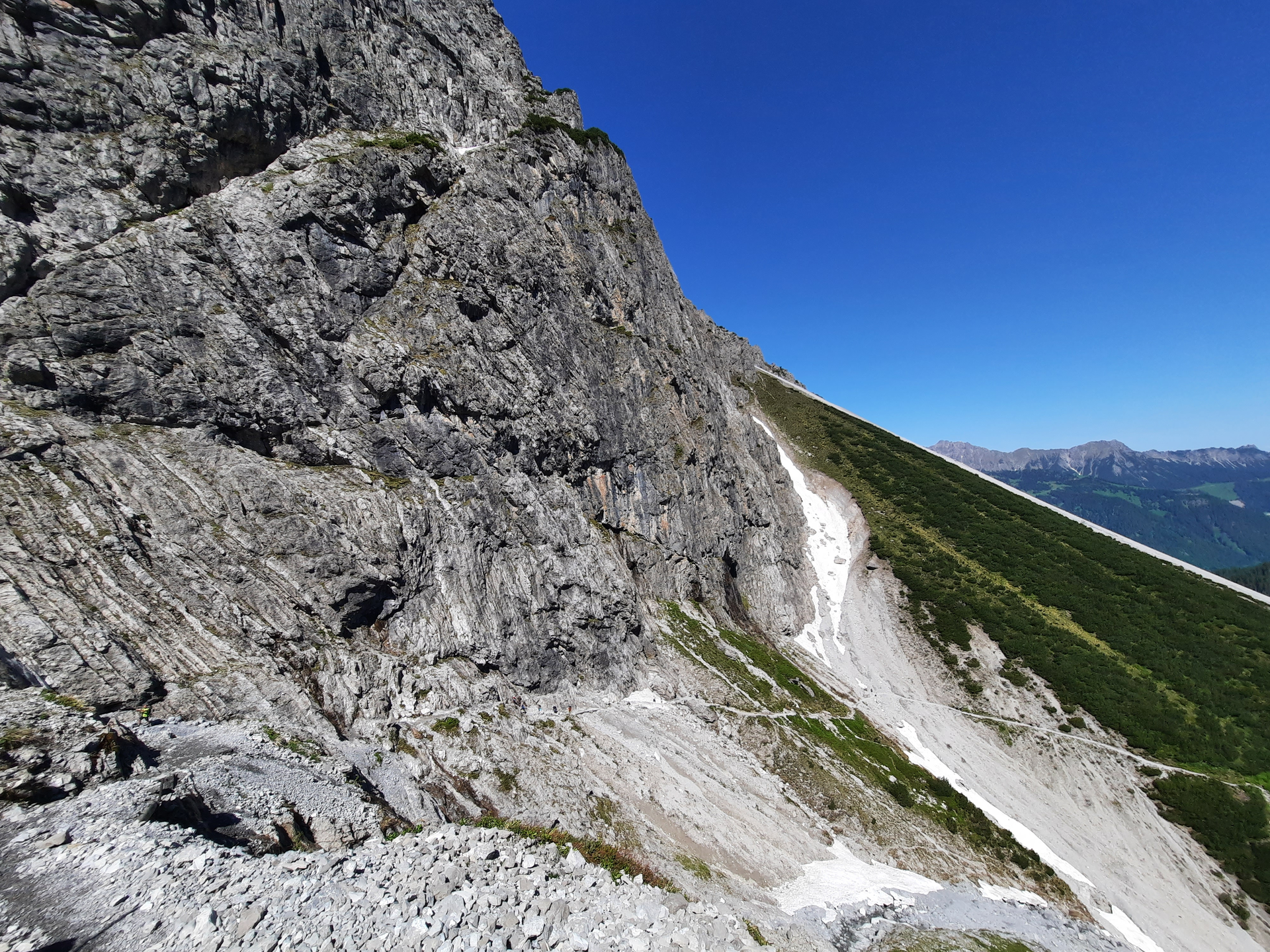 Sicherer Tritt ist hier Voraussetzung! Böses Erwachen der Beine - das ist das Ergebnis der Beine nach diesem 400 Höhenmeter steilen Anstieg zum Lünersee.