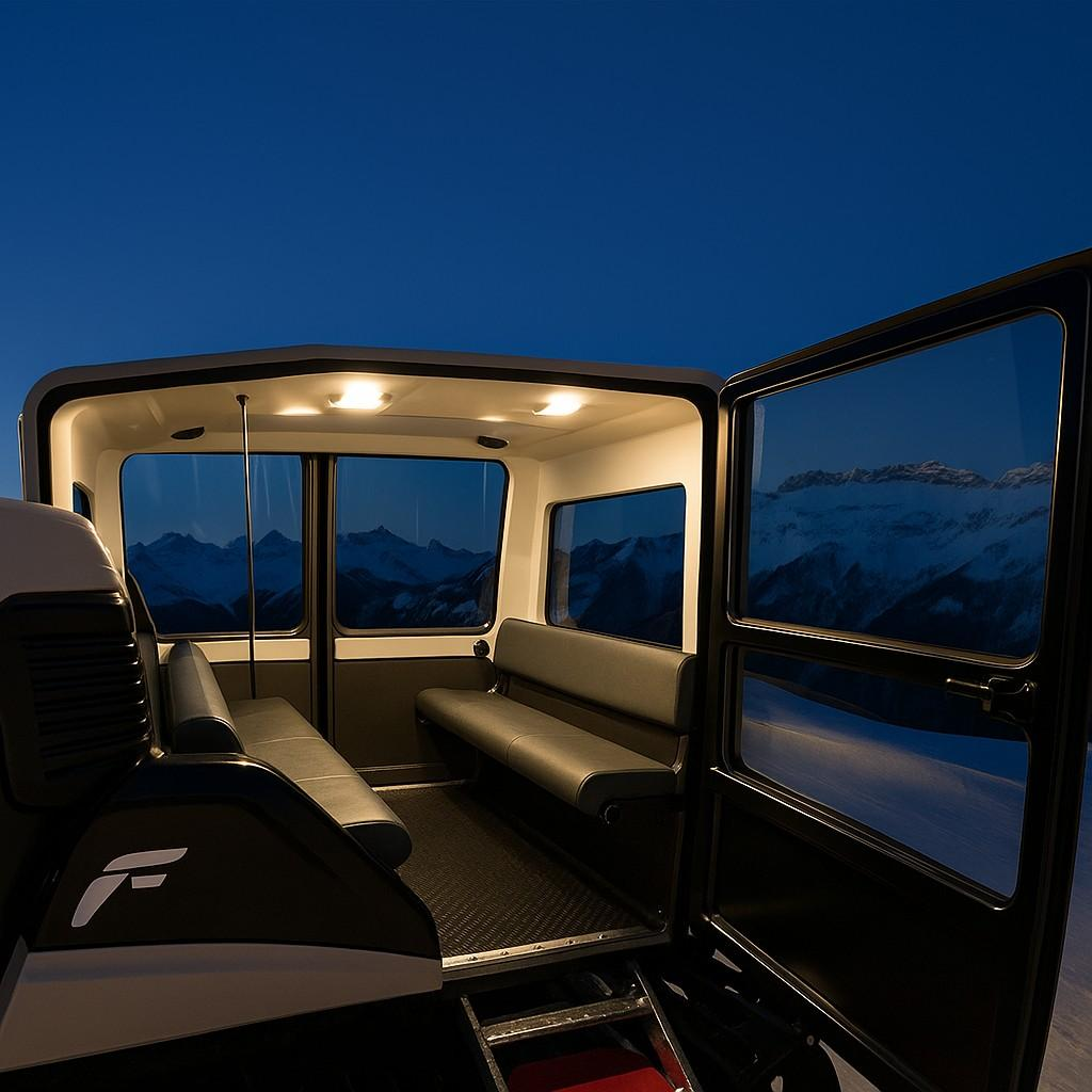 Ein besonderes Highlight: die Anreise im Ratrac-Shuttle – ein unvergessliches Erlebnis durch die verschneite Winterlandschaft von der Loischkopfbahn Talstation zum FUCHSBAU und zurück.