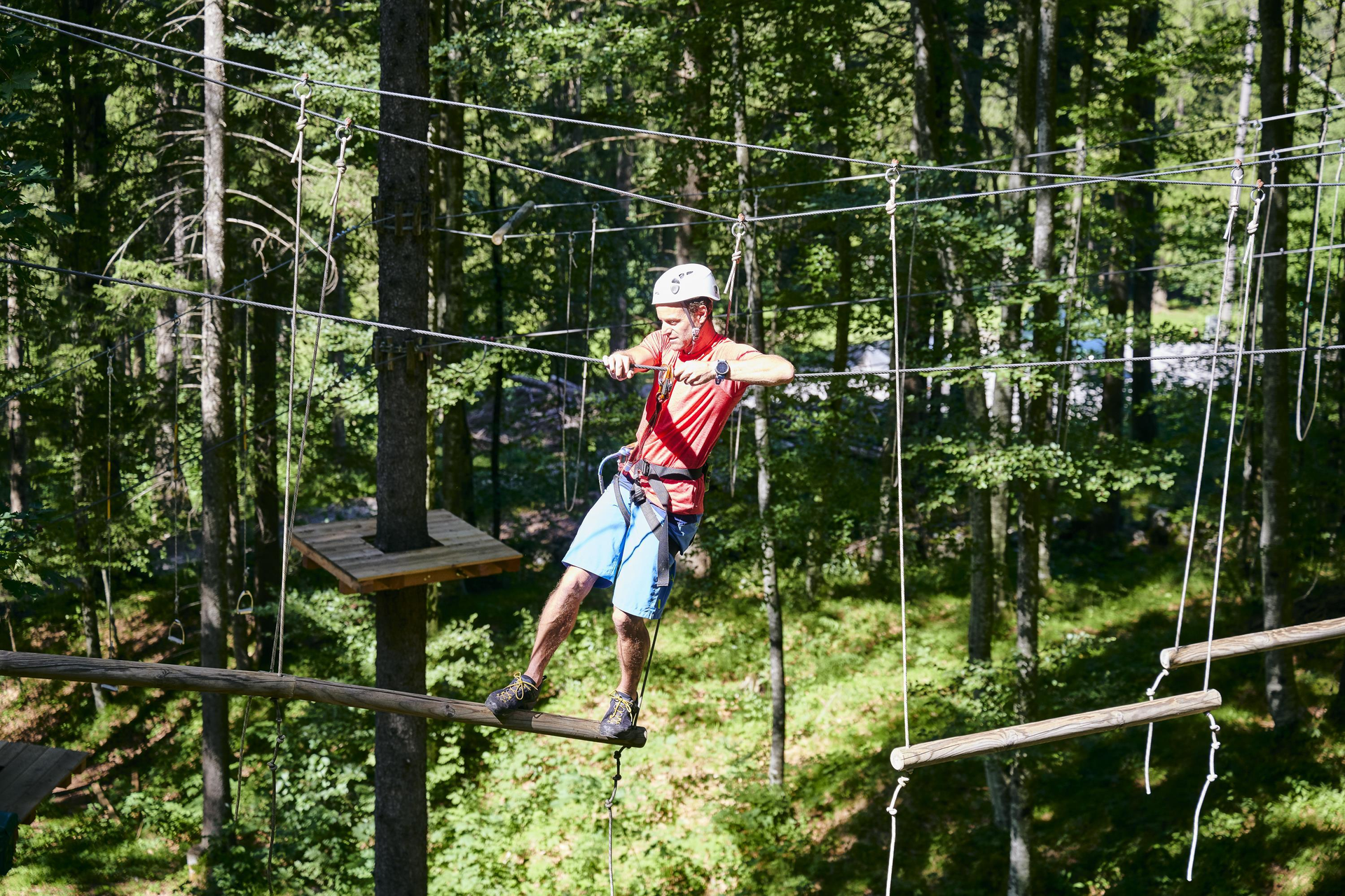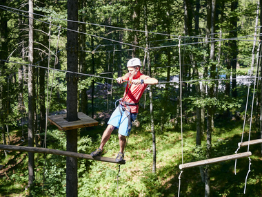 Echte Herausforderungen für mutige Kletterfans. Die Parcours bieten verschiedene Abenteuer für Anfänger:innen und Fortgeschrittene. Dich erwarten tolle Flying Fox Stationen und verschiedenste Seil- & Brückenkonstruktionen auf einer Länge von 500 Metern. Ein unvergessliches Erlebnis in der Natur, das Geschicklichkeit und Mut erfordert.