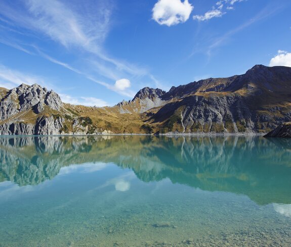 Wer einmal auf 1.970 Metern Höhe aus der Gondel der Lünerseebahn gestiegen ist, der weiß: der Lünersee wird nicht umsonst als „türkisblaue Perle des Rätikons“ umschrieben. An manchen Tagen erinnert er mit seiner intensiven Farbpracht fast an die Südsee, nur dass sich anstelle von Palmen das beeindruckende Alpenpanorama in ihm spiegelt, welches den Bergsee umgibt. An anderen Tagen, wenn der Wind seine Oberfläche kräuselt, schimmert er milchig wie das Mineral Türkis selbst. Beim Betrachten dieser außergewöhnlichen Farbenpracht, stellt sich mir eine Frage: Ändert sich die Farbe des Sees je nach Blickwinkel?