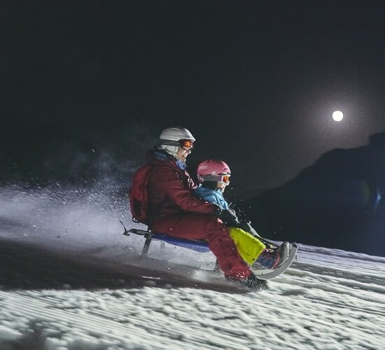 Abendessen mit Aussicht und Nachtrodeln zwischen Brand und Bürserberg – ein unvergessliches Wintererlebnis.