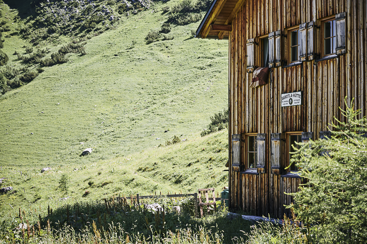Von der Ortsmitte in Brand wanderst Du talauswärts entlang des Alvierbachweges bis zur Abzweigung "Sarotla Tal - Sarotla Hütte". Der Weg zweigt hier rechts ab. Der gut beschilderte Weg durchs Sarotla Tal steigt mäßig an und führt, vorbei an tosenden Wasserfällen und mit Latschen bewachsenen Almflächen, zur Sarotla Hütte. Nach der Einkehr erfolgt der Rückweg auf der gleichen Strecke.