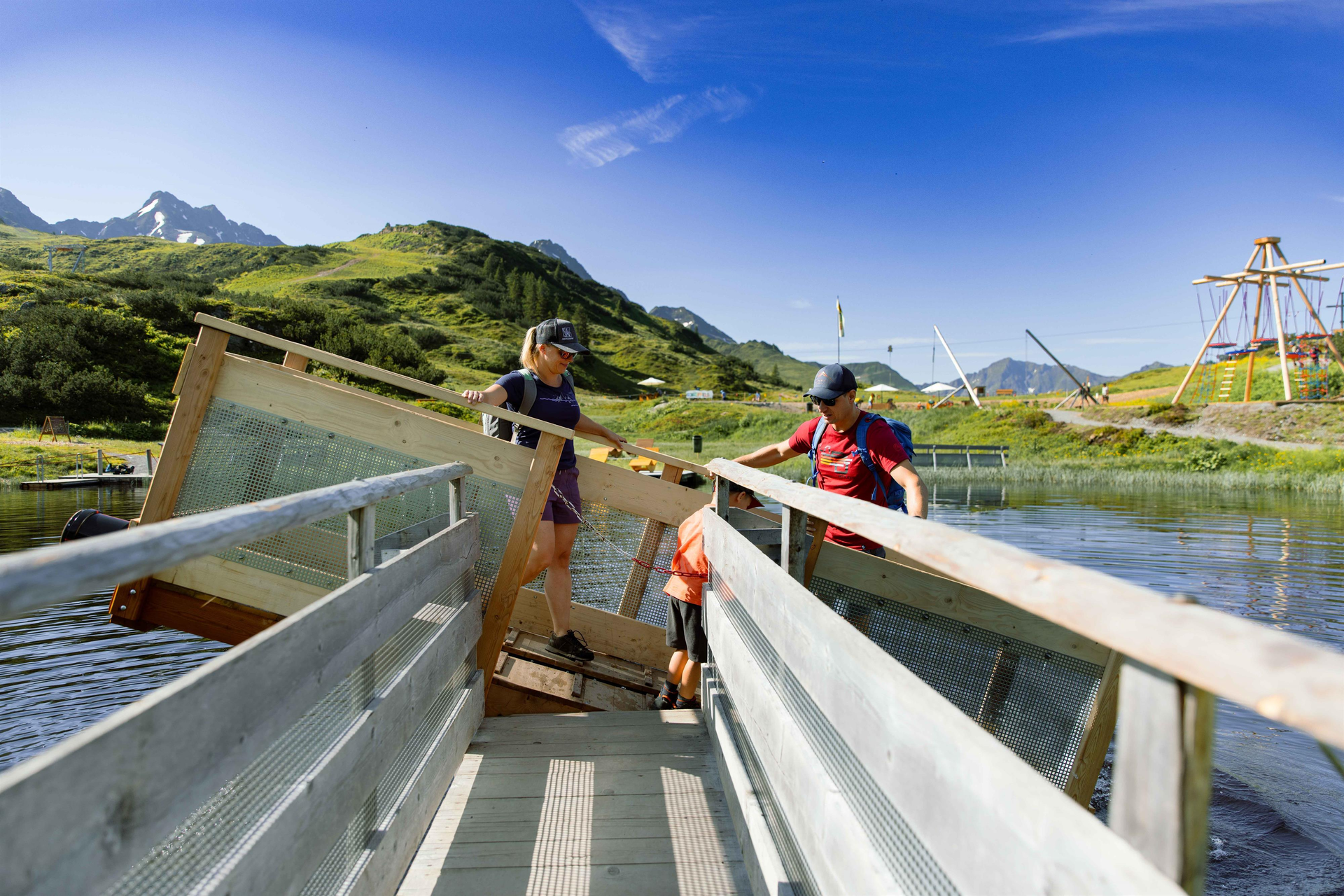 Das Bärenland auf dem Familien- und Erlebnisberg Sonnenkopf im Klostertal ist genau das Richtige für kleine Abenteurfans. Die Auffahrt auf den Berg in den Bärengondeln“ die Bärenhöhle, der Bärenspielplatz, die Wasserspiele und das Floßfahren auf dem Bärensee versprechen jede Menge Unterhaltung für Klein und Groß.