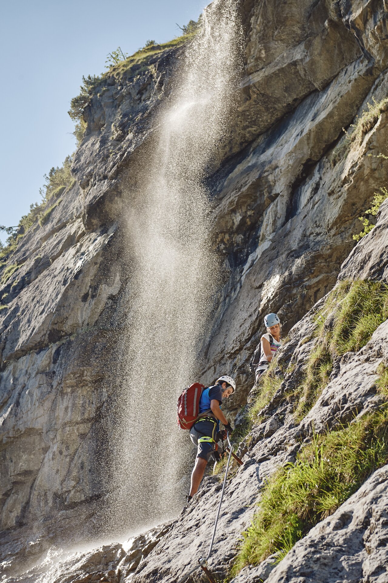 Heute wage ich mich zum ersten Mal an die Fallbachwand, Seite an Seite mit Roland Vierhauser. Er, ein Meister seines Fachs, sowohl als Bergführer und Erbauer dieses Klettersteigs als auch als erfahrener Eiskletterer. "Am Fallbach kann man auch Eisklettern. Die Eistouren hier sind unter den längsten in Österreich", erklärt er mir, als wir uns den steilen Pfad emporarbeiten. Seine Worte über das Schwinden der Eisbedingungen hallen als Mahnung des Klimawandels in mir nach.