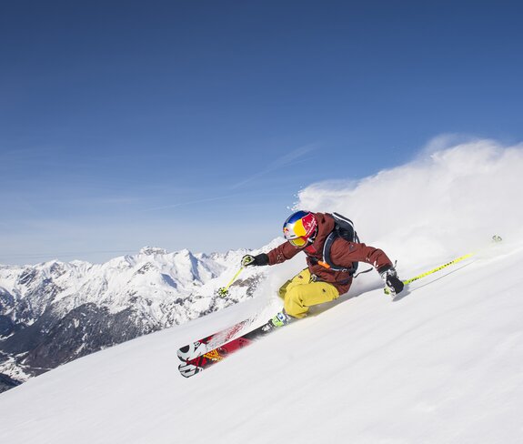 Was für ein Glücksgefühl, wenn man – ganz ohne anstrengenden Aufstieg – aus dem Sessellift aussteigt und direkt von der Bergstation bis zu 1.250 Höhenmeter Powder-Abfahrt vor sich hat. Der „Powder-Run“ ins Tal beeindruckt mit abwechslungsreichem Gelände und einer Strecke von drei Kilometern Länge.