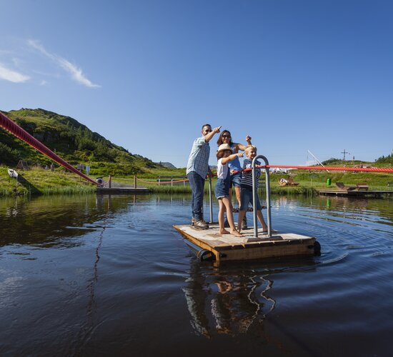 Stell Dir vor, wie Du beim Wandern den Blick über die unzähligen Berggipfel ringsum schweifen lässt, während das fröhliche Lachen der Kinder aus dem Natur-Freizeitpark Bärenland hallt. Schon die Auffahrt in den liebevoll gestalteten Bärengondeln ist ein Abenteuer für sich. Oben angekommen, eröffnet sich eine Welt voller Entdeckungen: ein Bärenspielplatz mit entspannten Floßfahrten und geheimnisvollen Bärenhöhlen lädt kleine Abenteurer:innen ein, ihrer Fantasie freien Lauf zu lassen.