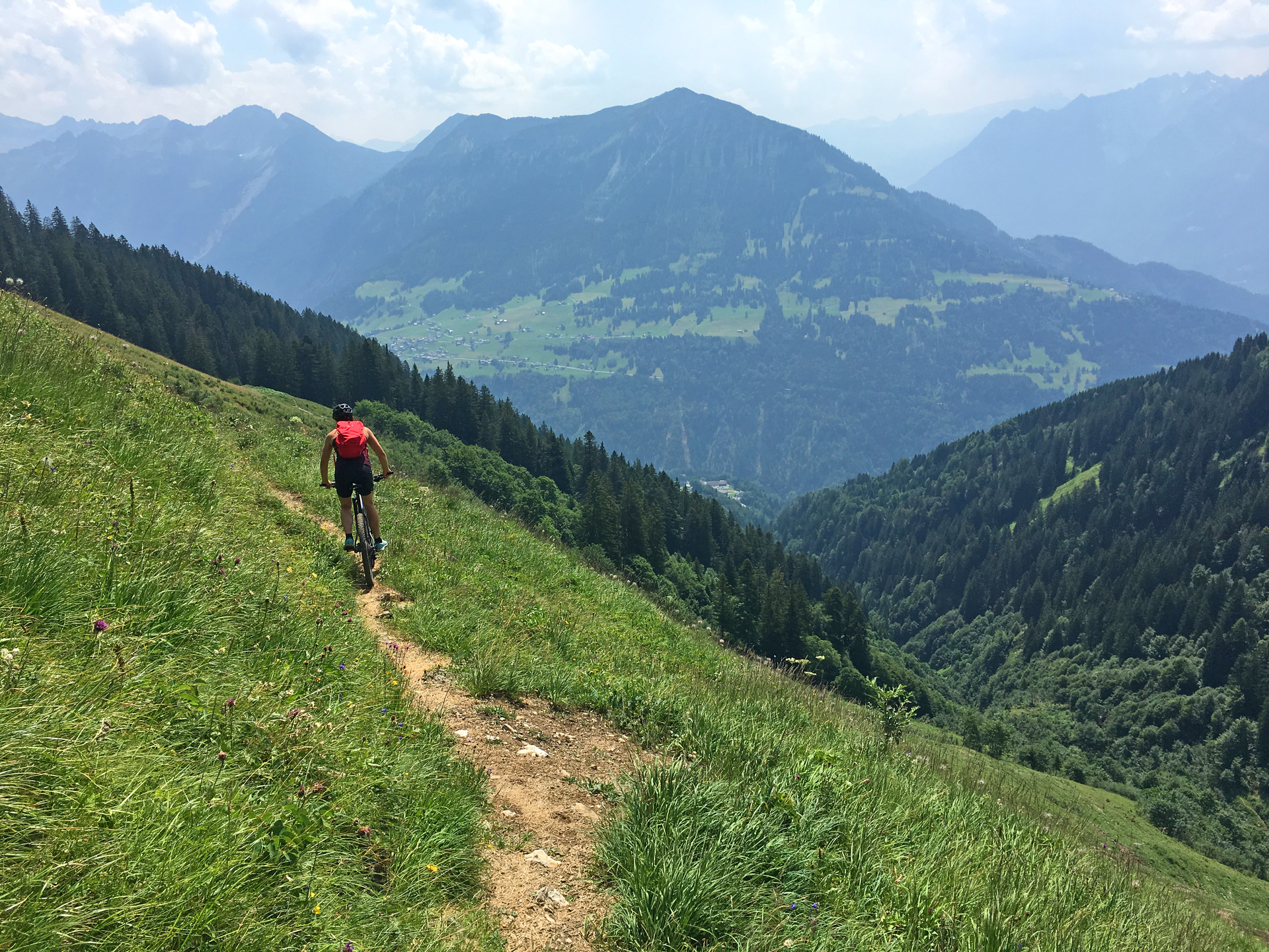 Panorama-Mountainbike-Tour vorbei an der Gaßner Alpe und der Plansott Alpe im Biosphärenpark Großes Walsertal.