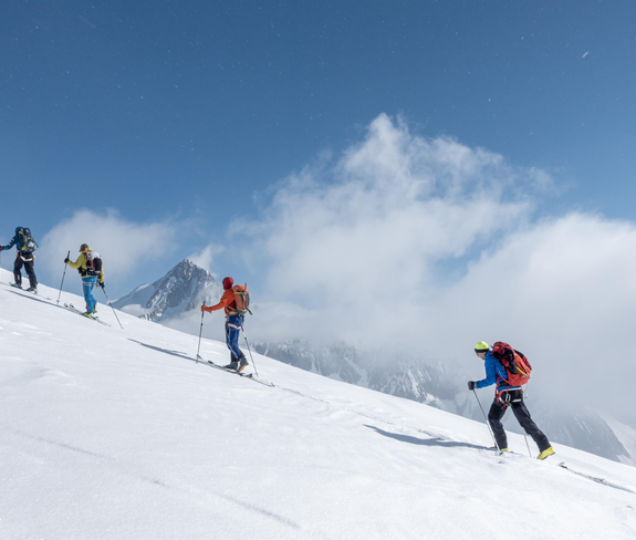 In zwei Kurstagen erlernst Du die Grundlagen des Skibergsteigens in der Praxis. Von der benötigten Ausrüstung, über die richtige Spuranlage, die korrekte Interpretation des Lawinenlageberichts, den Umgang mit der Sicherheitsausrüstung bis hin zum Verhalten in Notsituationen.